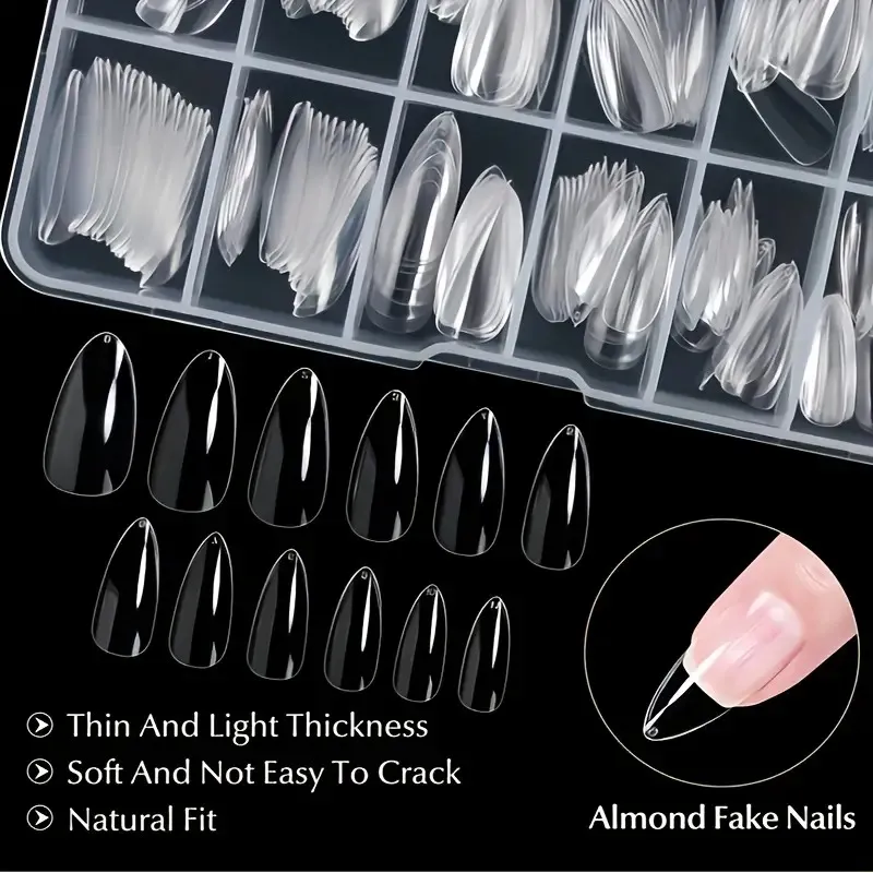 100pcs Almond Shape Transparent / White Color Artificial Nails Nails kit Acrylic Nails Transparent Artificial nail.