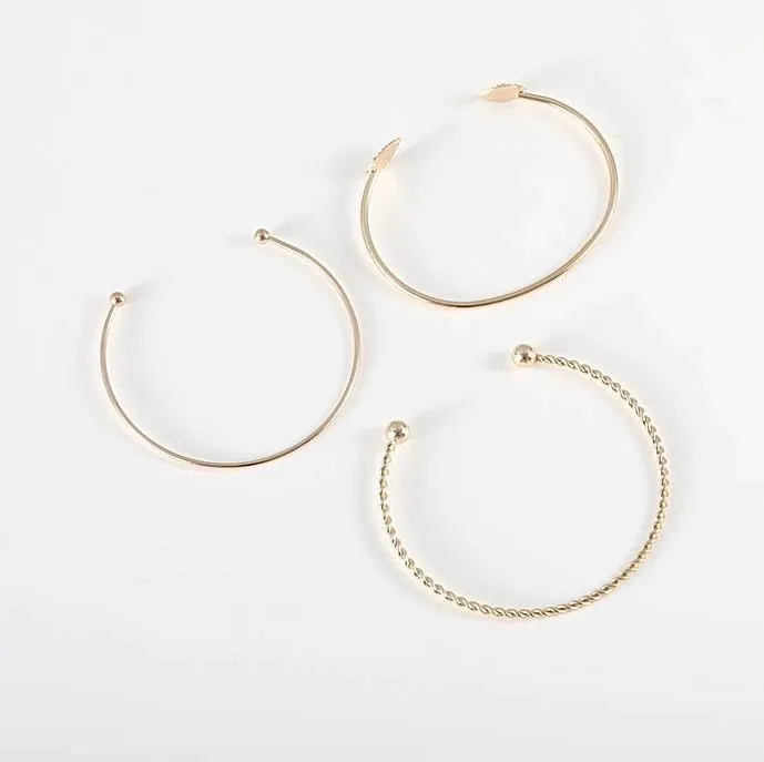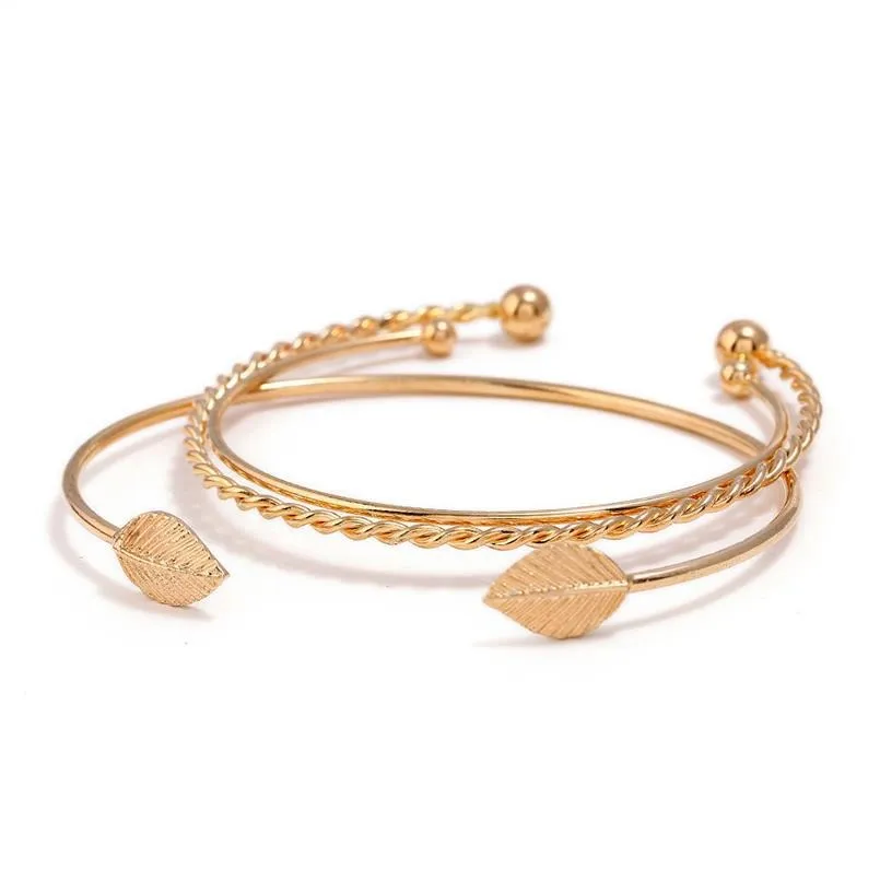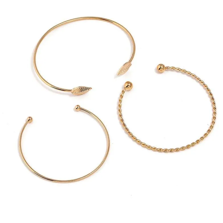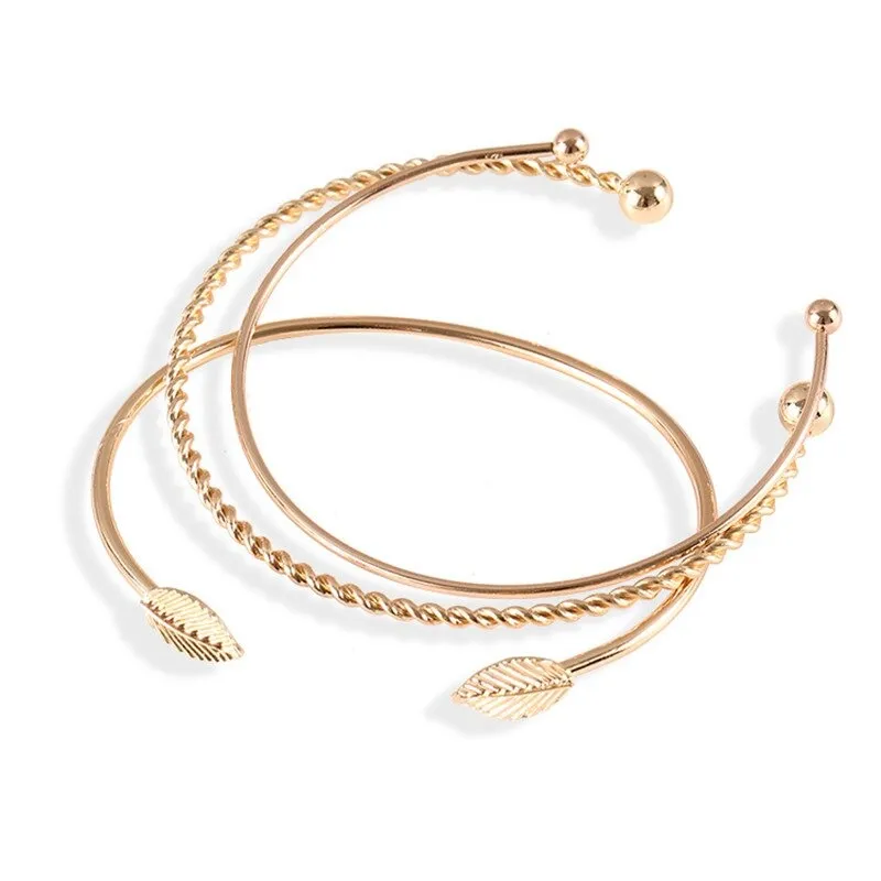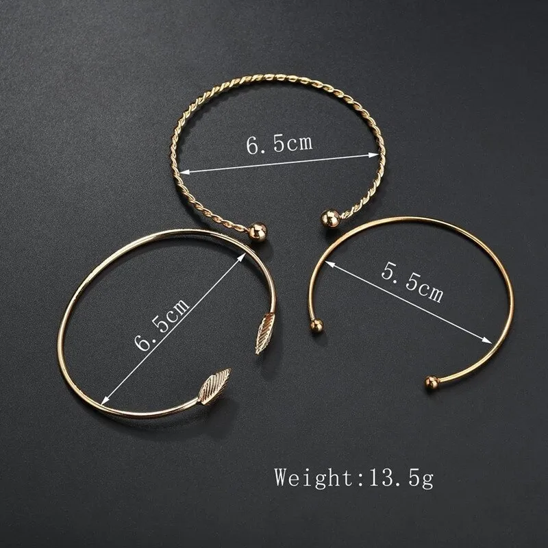 1 x Elegant Leaf Open Bangle Bracelet for Women 3pcs-Set